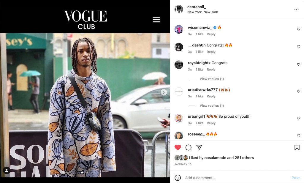 CENT’ANNI: Yea, they featured me on ‘Club Vogue’. They were interested in what I was doing and wanted to spotlight me. It’s this community that they’re building that showcases inclusivity and diversity through allowing people whose careers are still building to be discovered. I like that they are more open now. This allows people to get their shine on.